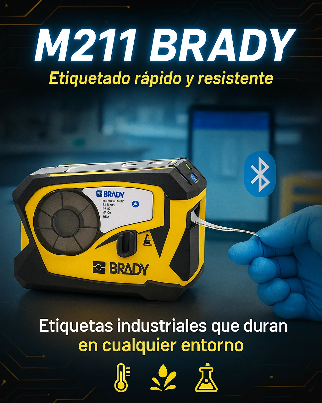 Revoluciona la forma en la que trabaja con la M211 y la aplicación para móviles Etiquetas rápidas de Brady, la mejor app de la industria. Esta etiquetadora con Bluetooth es compacta y ligera, portátil, ideal para portarla o colocarla cerca. Además, es ultra duradera ya que resiste aplastamientos, caídas y golpes.