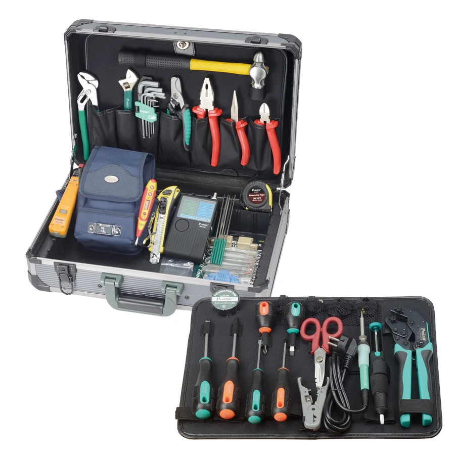 Este juego también viene con soldador, alicates, destornilladores, llaves hexagonales y martillo, ofreciendo la mejor solución total para trabajos de telecomunicaciones y redes.