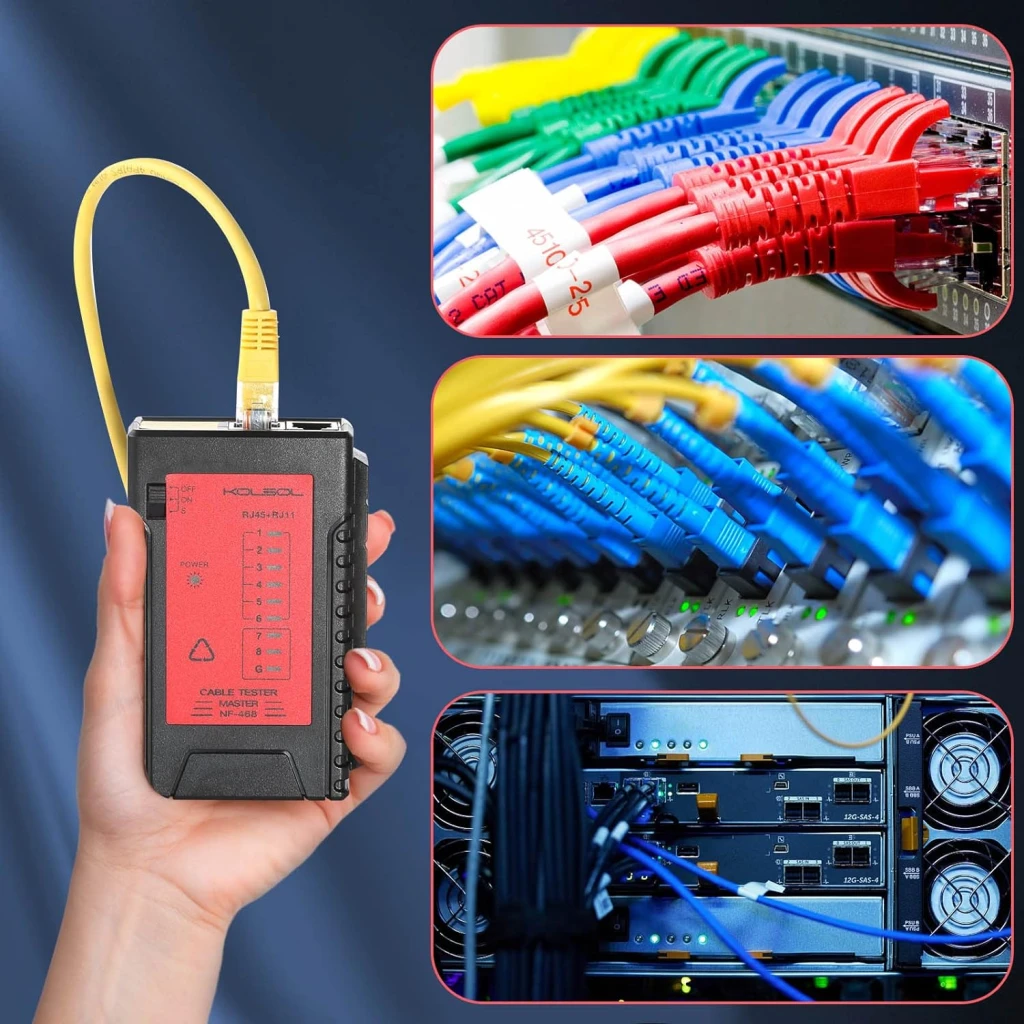 Encienda el comprobador y conecte un cable de red. Iniciará automáticamente una prueba y localizará el cable dañado.