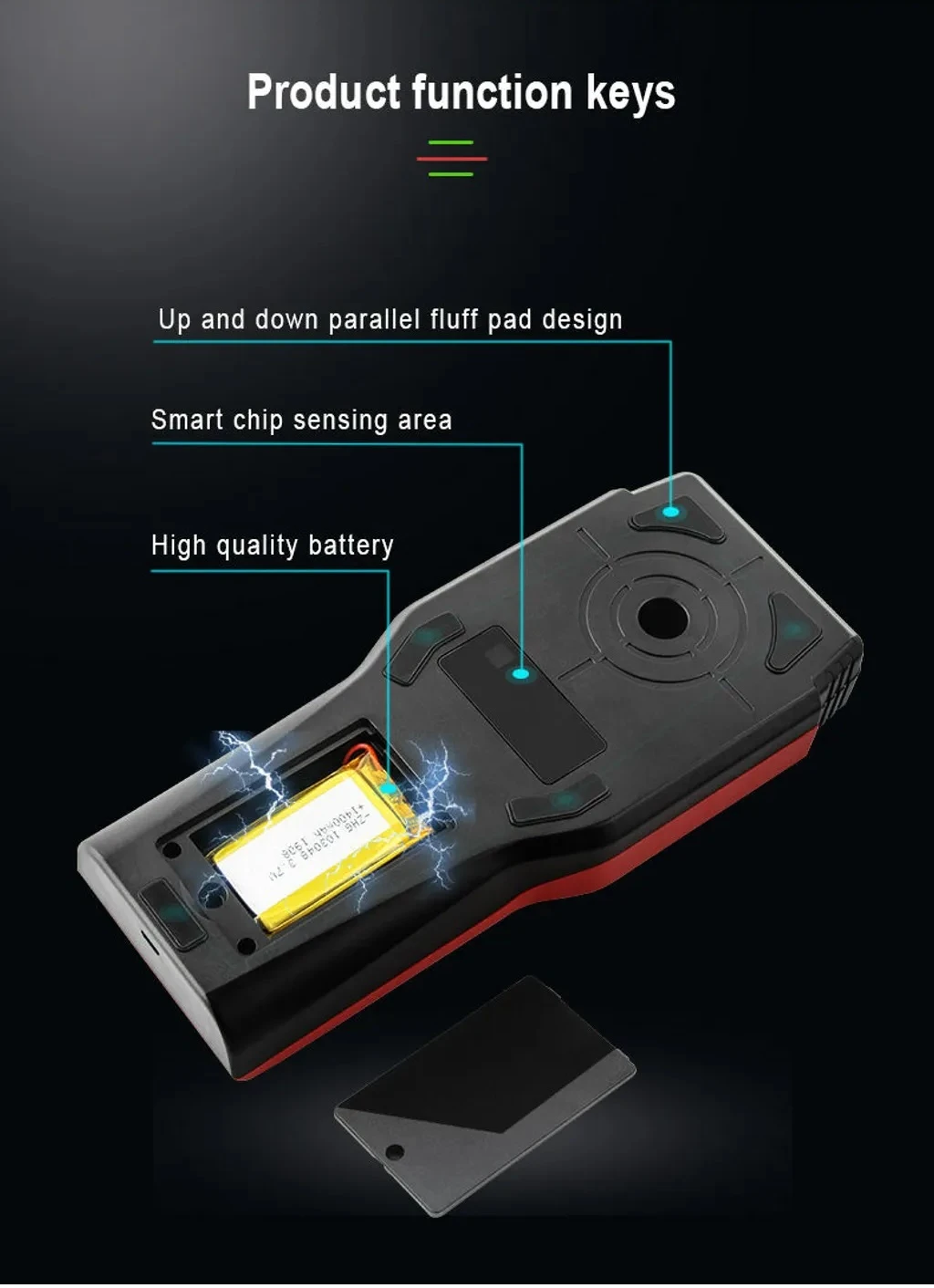 A pesar de todas estas características, el detector de pared es resistente al medio ambiente y a las duras condiciones. Funciona óptimamente en un rango de temperatura de -10 °C a +50 °C y puede almacenarse entre -20 °C y +70 °C. Su robusta batería de iones de litio de 3,7 V y 1500 mAh ofrece 10 horas de autonomía, y el detector pesa tan solo 237 g. Además, cuenta con una robusta protección IP54 contra la entrada de polvo y salpicaduras de agua desde cualquier dirección.