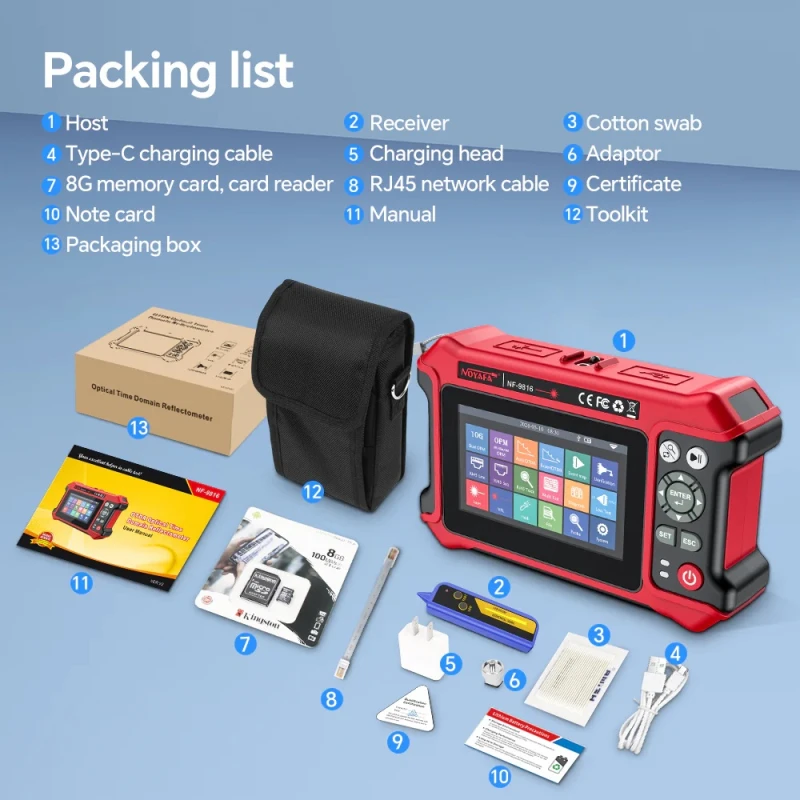 Utiliza el formato de archivo SOR estándar, compatible con herramientas profesionales de análisis de informes OTDR. - Seguridad y Confiabilidad.