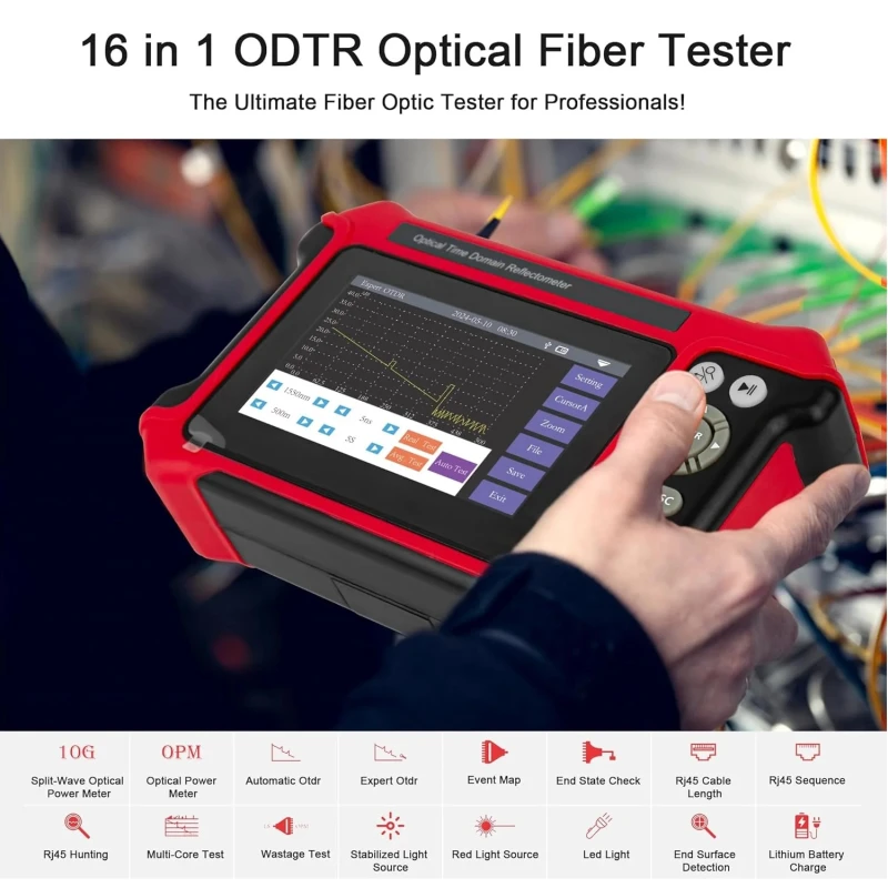 - Modo OTDR experto: permite ajustes manuales para longitud de onda, ancho de pulso, distancia de prueba y más, ideal para usuarios e ingenieros avanzados.