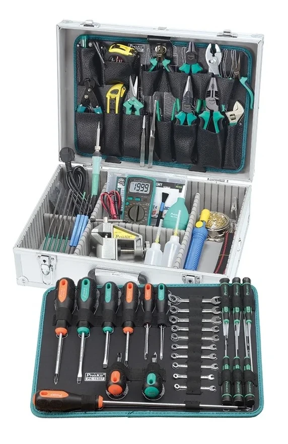 Contiene la mayoría de las herramientas necesarias para el mantenimiento y reparación de electrónica y maquinaria.